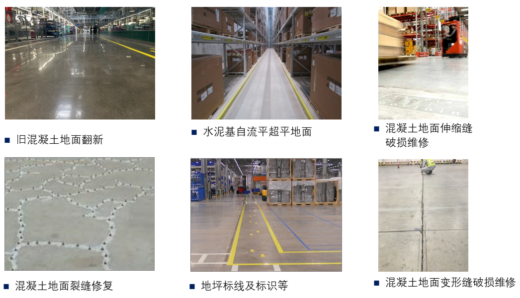 ■ ?中和建筑可以提供各種類型的、應(yīng)用于工業(yè)廠房混凝土地坪維護(hù)服務(wù)。