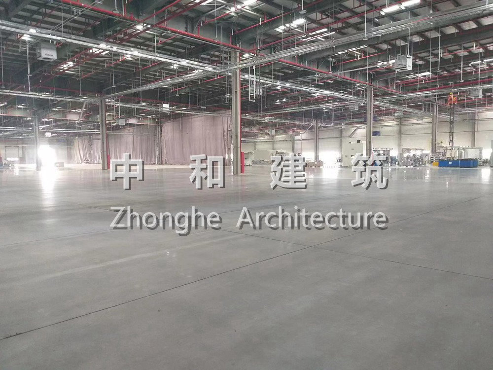 地坪系統(tǒng):混凝土墊層+鋼筋混凝土面層+西卡-3耐磨硬化劑+西卡鋰基固化劑整體地坪施工,共28000平米
