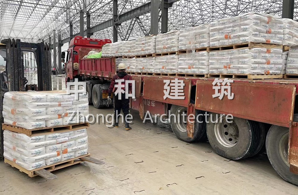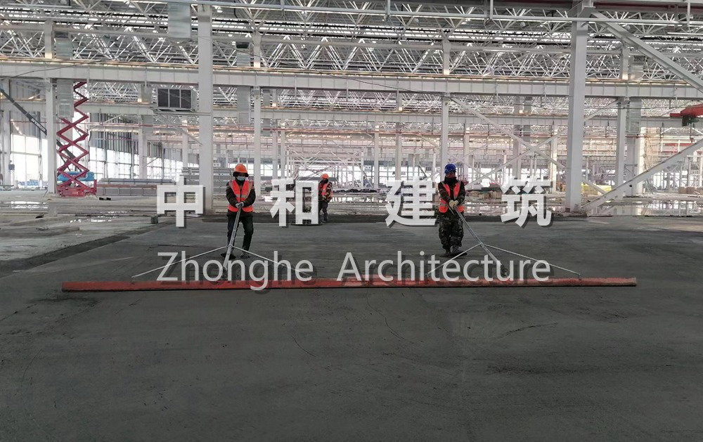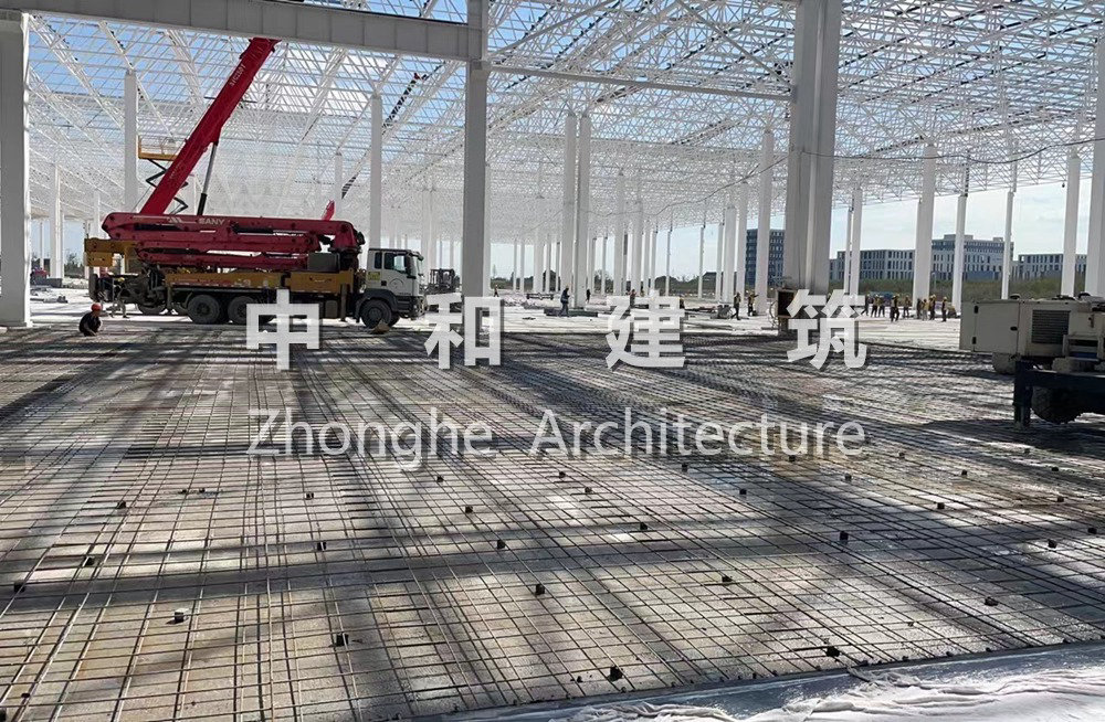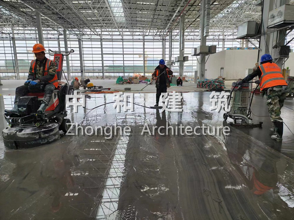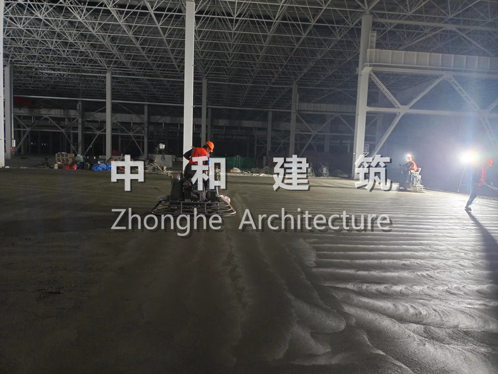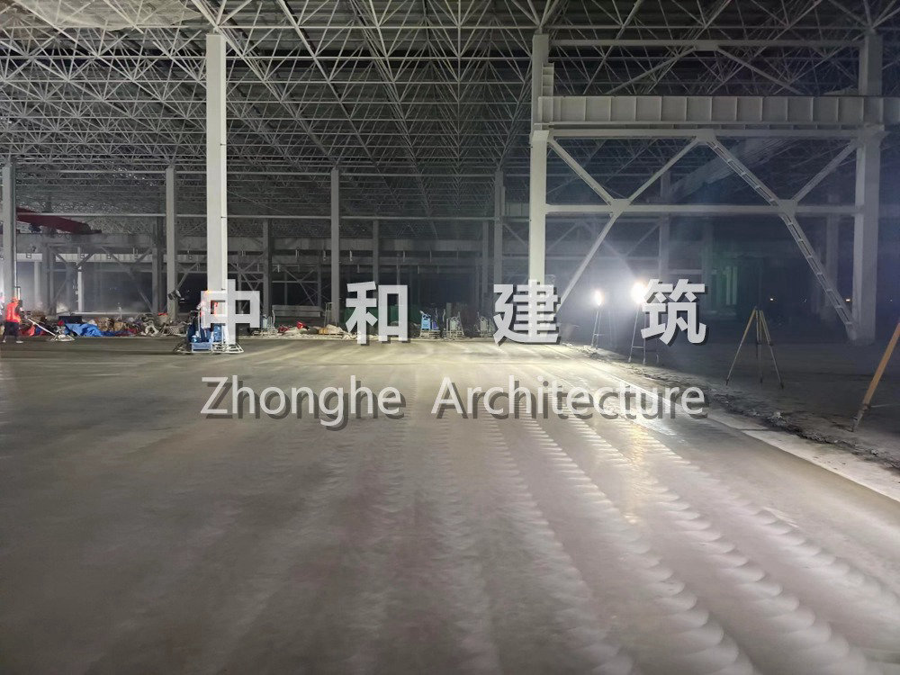 地坪系統(tǒng):樁承結構筏板+鋼纖維找平層+巴斯夫410耐磨+希培德CIPADECK鋰基固化劑,11萬平米